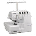 - Quick change levers for the rolled hem stitch feature and cutting knife