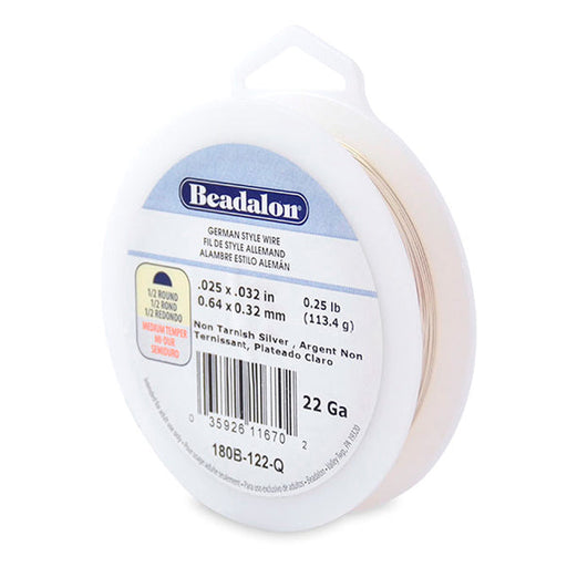 German Style Wire, Half Round,Tarnish Resistant Silver Plated, 22 gauge .64 mm / .025 in, 1/4 lb / .11 kg