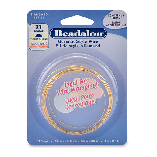 Expertly craft intricate jewelry designs with our German Style Wire! Made of tarnish resistant brass, this 20 gauge wire is perfect for creating ha...