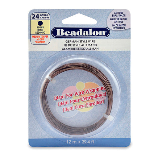 German Style Wire, Round, Antique Brass Color, 24 gauge .51 mm / .020 in, 12 m / 39.4 ft