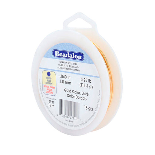 German Style Wire, Round, Gold Color provides strength and durability for your jewelry projects. The 18 gauge size at 1.02 mm / .040 in is perfect ...