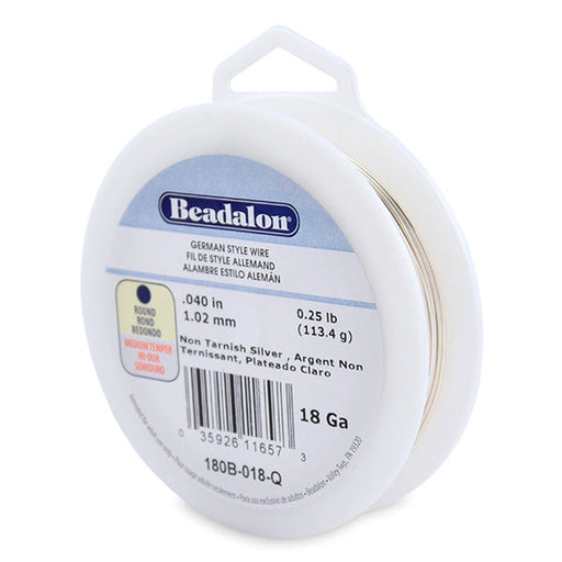 German Style Wire, Round, Silver Plated, 18 gauge 1.02 mm / .040 in, approx. 49 ft, 1/4 lb / .11 kg