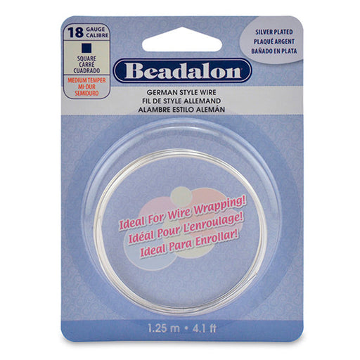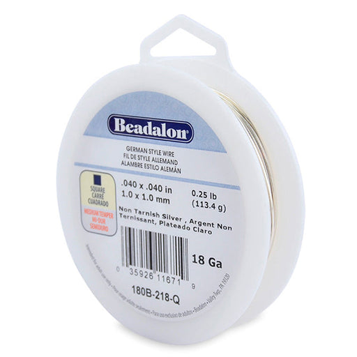 German Style Wire, Square, Silver Plated, 18 gauge 1.02 mm / .040 in, 1/4 lb / .11 kg