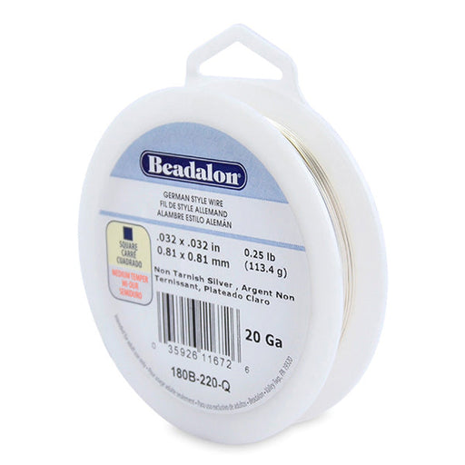 German Style Wire, Square, Silver Plated, 20 gauge .81 mm / .032 in, 1/4 lb / .11 kg