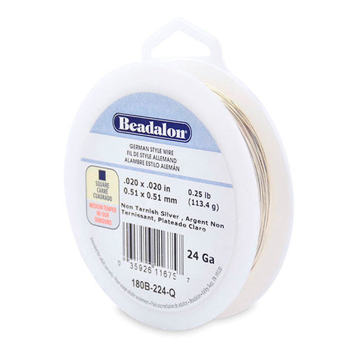 German Style Wire, Square, Silver Plated, 24 gauge .51 mm / .020 in, 1/4 lb / .11 kg