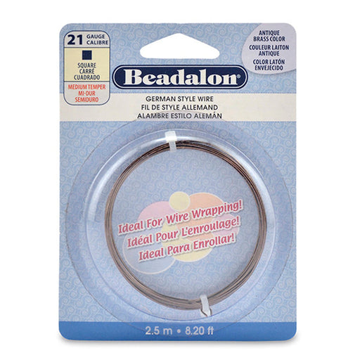 German Style Wire, Square, Antique Brass Color, 21 gauge .72 mm / .028 in, 2.5 m / 8.2 ft