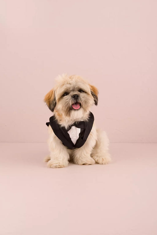 Dress your four-legged ring bearer in this adorable Pet Tux. Designed to look like a black tuxedo jacket with a white shirt and black bow tie, you...