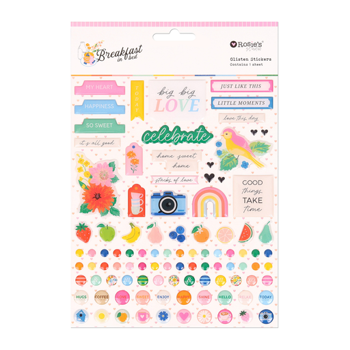 Bring texture and shine to your projects with the Breakfast in Bed glisten stickers. These glossy epoxy stickers feature an array of colourful dots...