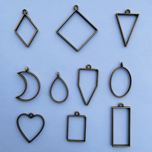 Doodles - Laplaz Open Bezels - 10 x Mixed Shapes - Old Gold