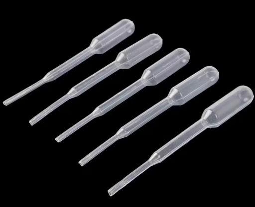 This package contains one Ranger Pipettes display with 5 clear plastic pipettes each with a 4ml capacity. Made in USA.