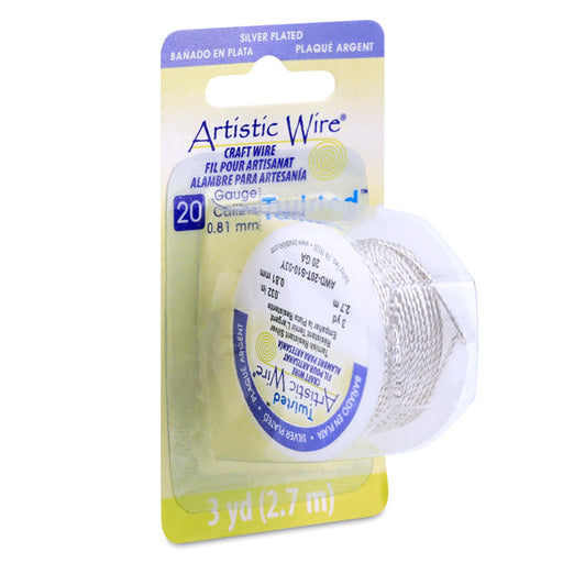 Artistic Wire, 20 Gauge / .81 mm Silver Plated Tarnish Resistant Colored Copper Craft Wire, Round Twist, Tarnish Resistant Silver, 3 yd / 2.7 m Dis...