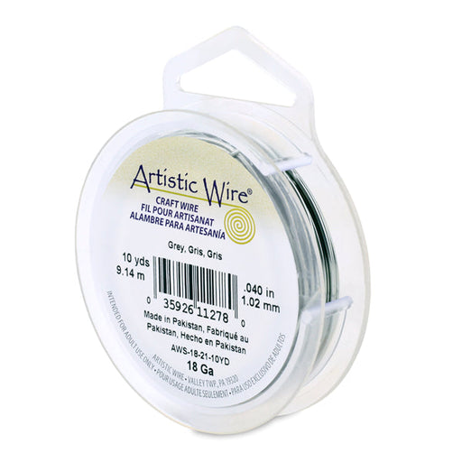 Artistic Wire, 18 Gauge / 1.0 mm Tarnish Resistant Colored Copper Craft Wire, Grey, 10 yd / 9.1 m