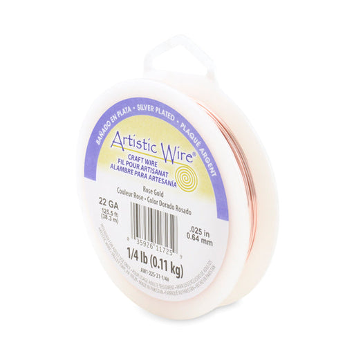 Artistic Wire, 22 Gauge / .64 mm Silver Plated Tarnish Resistant Colored Copper Craft Wire, Rose Gold Color, 1/4 lb / .11 kg, approx. 125.5 ft / 38...