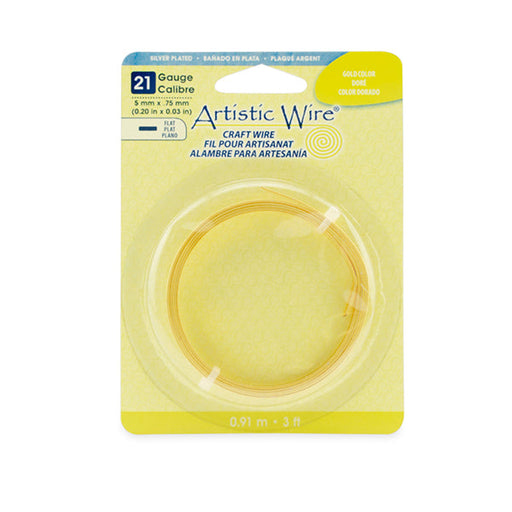 Artistic Wire, 21 Gauge, Flat, 5 mm x .75 mm / 0.20 in x 0.03 in, Silver Plated Gold Color, 3 ft / .91 m
