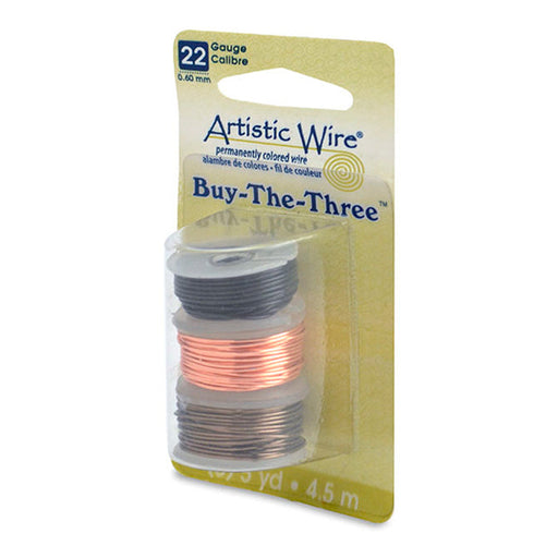 Artistic Wire, 22 Gauge / .64 mm Tarnish Resistant Colored Copper Craft Wire, BuyThe3, Black, Natural Color, Antique Brass Color, 5 yd / 4.5 m ea