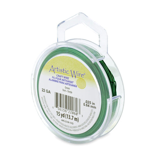 Artistic Wire, 22 Gauge / .64 mm Tarnish Resistant Colored Copper Craft Wire, Green, 15 yd / 13.7 m