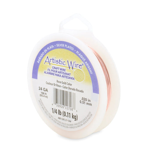 Artistic Wire, 24 Gauge / .51 mm Silver Plated Tarnish Resistant Colored Copper Craft Wire, Rose Gold Color, 1/4 lb / .11 kg, approx. 198 ft / 60.4 m