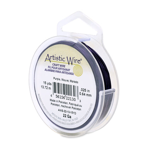 Artistic Wire, 22 Gauge / .64 mm Tarnish Resistant Colored Copper Craft Wire, Purple, 15 yd / 13.7 m