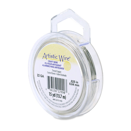 Artistic Wire, 22 Gauge / .64 mm Tarnish Resistant Tinned Copper Craft Wire, Silver Color, 15 yd / 13.7 m