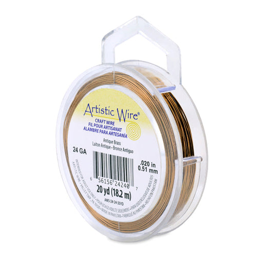 Artistic Wire, 24 Gauge / .51 mm Tarnish Resistant Colored Copper Craft Wire, Antique Brass Color, 20 yd / 18.2 m