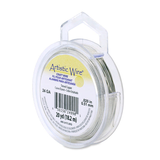 Artistic Wire, 24 Gauge / .51 mm Tarnish Resistant Tinned Copper Craft Wire, Silver Color, 10 yd / 9.1 m