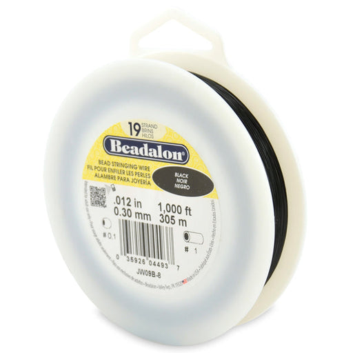 19 Strand Stainless Steel Bead Stringing Wire, .012 in / 0.30 mm, Black, 1000 ft / 305 m