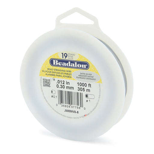 19 Strand Stainless Steel Bead Stringing Wire, .012 in / 0.30 mm, Satin Silver, 1000 ft / 305 m