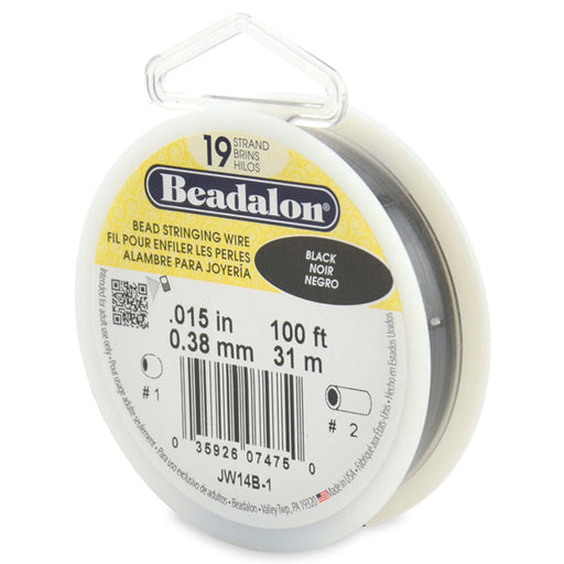 19 Strand Stainless Steel Bead Stringing Wire, .015 in / 0.38 mm, Black, 100 ft / 31 m