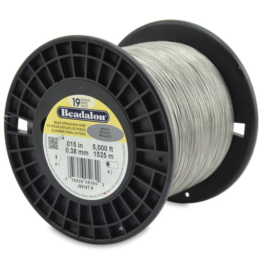 19 Strand Stainless Steel Bead Stringing Wire, .015 in / 0.38 mm, Bright, 5000 ft / 1525 m