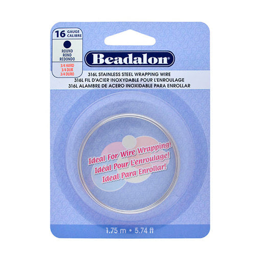 316L Stainless Steel Wrapping Wire, Round, 16 gauge 1.3 mm / .050 in, 1.75 m / 5.74 ft