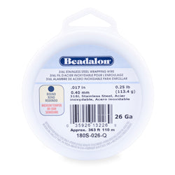 316L Stainless Steel Wrapping Wire, Round, 26 gauge .41 mm / .016 in, 363 ft 110 m, 1/4 lb / .11 kg