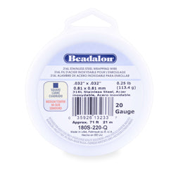 316L Stainless Steel Wrapping Wire, Round, 20 gauge .81 mm / .032 in, 6 m / 19.7 ft