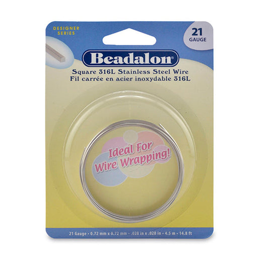 316L Stainless Steel Wrapping Wire, Square, 21 gauge .72 mm / .028 in, 4.5 m / 14.8 ft