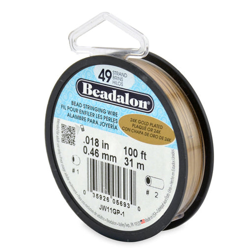 49 Strand Bead Stringing Wire, .024 in / 0.61 mm, Gold Color, 10 ft / 3.1 m- BEADALON