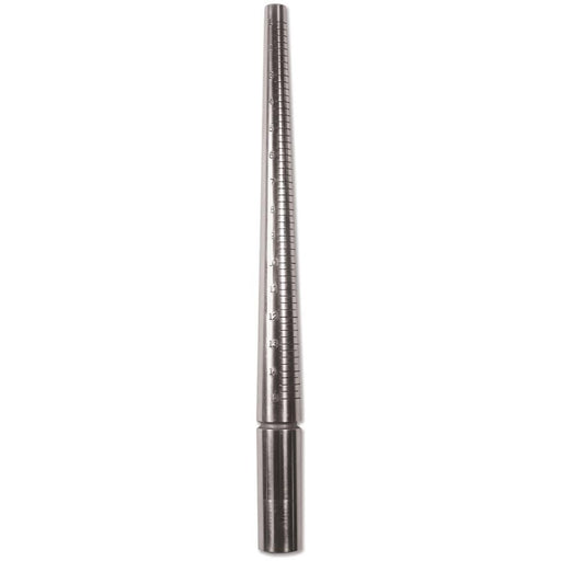 Ring Mandrel is used for enlarging, forming and shaping rings. Gauge Ring Mandrel, grooved and marked with U.S. Standard Ring Sizes: 1-15