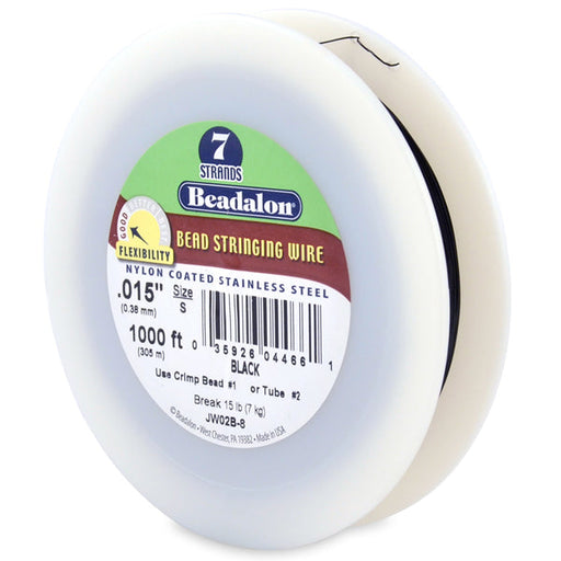 7 Strand Stainless Steel Bead Stringing Wire, .015 in / 0.38 mm, Black, 1000 ft / 305 m