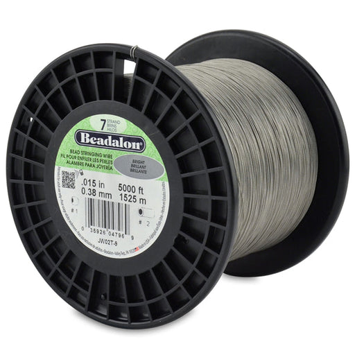 7 Strand Stainless Steel Bead Stringing Wire, .015 in / 0.38 mm, Bright, 5000 ft / 1525 m