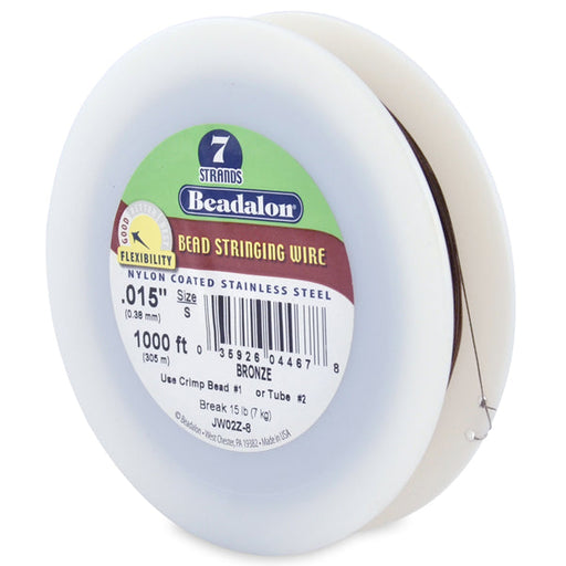 7 Strand Stainless Steel Bead Stringing Wire, .015 in / 0.38 mm, Bronze, 1000 ft / 305 m