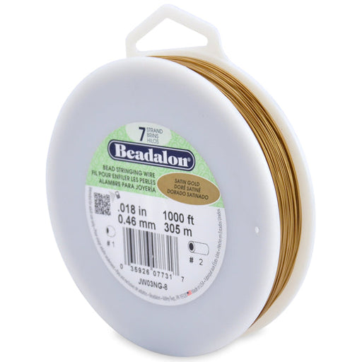 7 Strand Stainless Steel Bead Stringing Wire, .018 in / 0.46 mm, Satin Gold, 1000 ft / 305 m