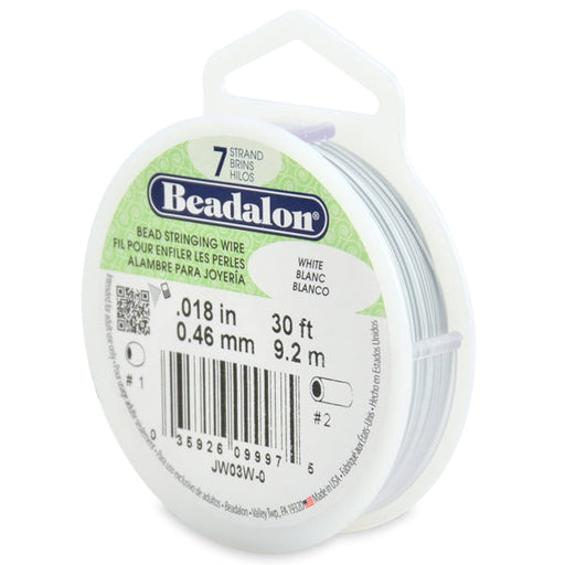 7 Strand Stainless Steel Bead Stringing Wire, .018 in / 0.46 mm, White, 30 ft / 9.2 m