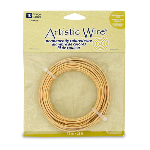 Artistic Wire, 10 Gauge / 2.60 mm Tarnish Resistant Brass Craft Wire, 25 ft / 7.6 m