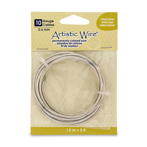 Artistic Wire, 10 Gauge / 2.60 mm Tarnish Resistant Tinned Copper Craft Wire, Silver Color, 5 ft / 1.5 m