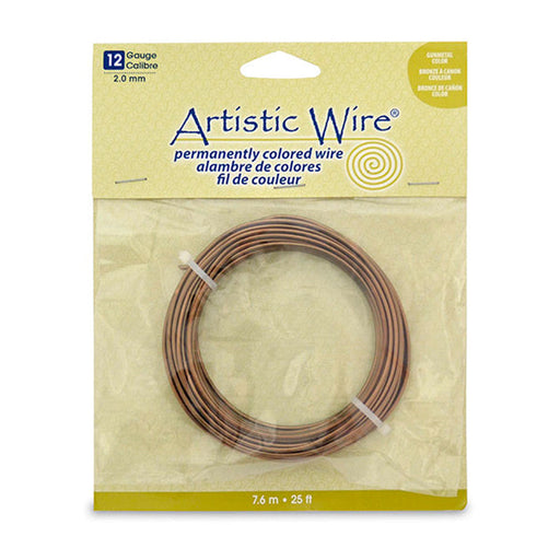 Artistic Wire, 12 Gauge / 2.1 mm Tarnish Resistant Colored Copper Craft Wire, Antique Brass Color, 25 ft / 7.6 m