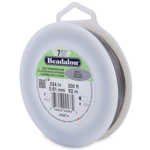 7 Strand Stainless Steel Bead Stringing Wire, .024 in / 0.61 mm, Bright, 300 ft / 91 m