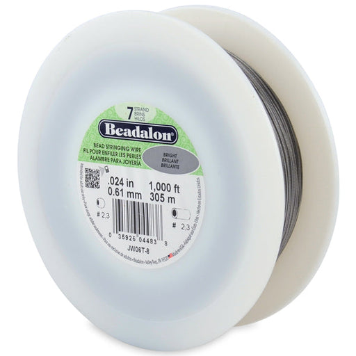 7 Strand Stainless Steel Bead Stringing Wire, .024 in / 0.61 mm, Bright, 1000 ft / 305 m