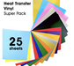 25 x Assorted Colour PU Heat Transfer Vinyl Sheets Size 12"x10" per sheet.