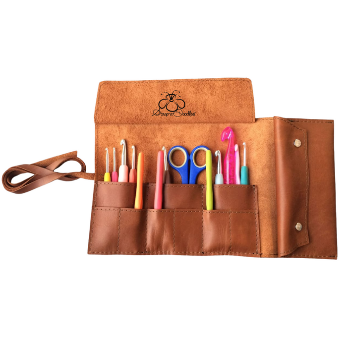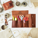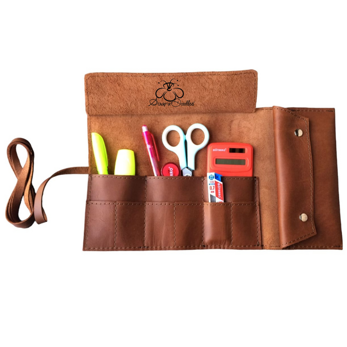 Crafters will find this Roll Up Bag to be a highly useful addition. It measures 27cm in length and 35cm in width, and can easily store needles, stationery, makeup, or brushes. Made from genuine leather, this bag is a handcrafted item.