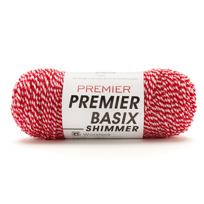 Add a little touch of shine to every project with Premier Basix Shimmer. Craft comfortably knowing that this yarn is safe for you! It has passed the highest standard, suitable for direct contact with the most sensitive skin, even babies and small children. Weight Category: 4. Content: 97% Acrylic, 3% Metallic Polyester. Put up: 4.23oz/120 g, 216yds/198m. Gauge: 17sx23r=4in/10cm on size US Size 9 (5.5 mm) knitting needles. Suggested crochet hook size: US Size I-9 (5.5 mm). Dyelotted: we try but are not always able to match dyelots. Available in a variety of colors. Each sold separately. Machine Wash Warm, Do Not Bleach, Tumble Dry Medium Heat, Do Not Iron, Dry Clean. Imported.